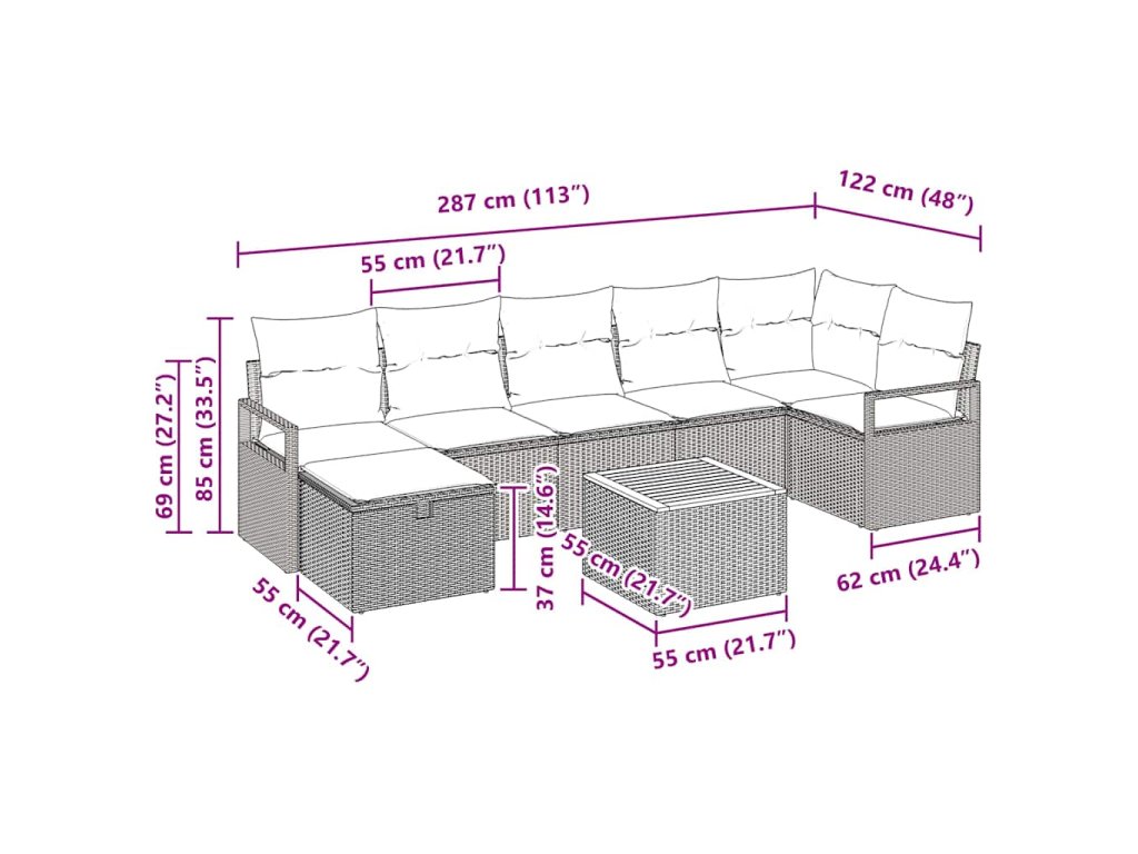 Tato moderní zahradní pohovková souprava je skvělý doplněk pro jakýkoliv venkovní prostor, prostě perfektní kombinace elegance a funkčnosti. Vyrobená z poly ratanu a polyesteru, slibuje vám jak dlouhou životnost, tak úžasný vzhled. Její moderní styl má čisté linie, které vytvoří klidnou oázu pro relaxaci. Ať už vítáte hosty nebo si užíváte chvíle klidného odpočinku, pohodlný a stylový design udělá z vaší zahrady nebo terasy místo s neodolatelným šarmem.