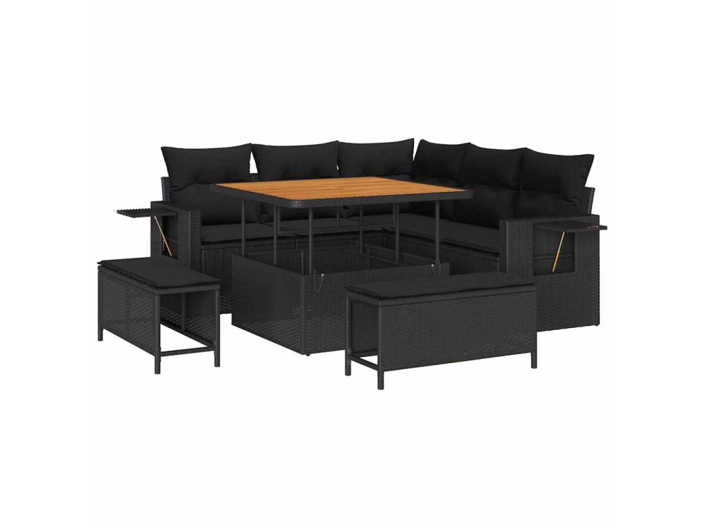 Sada zahradních pohovek s polštářem 8 pcs Černá polyratan 3361734