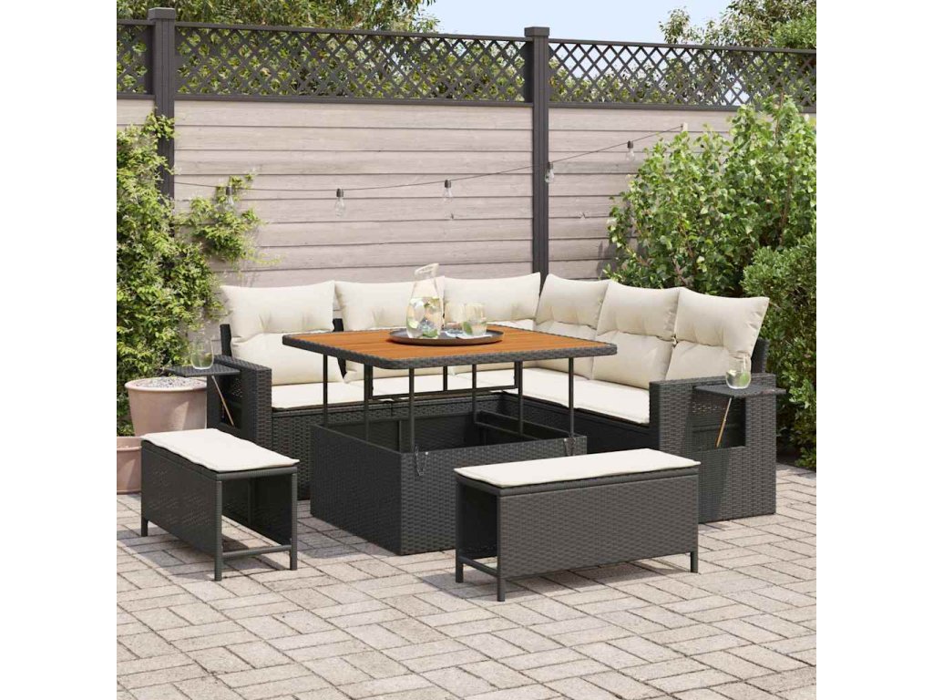 Sada zahradních pohovek s polštářem 8 pcs Černá polyratan 3361735