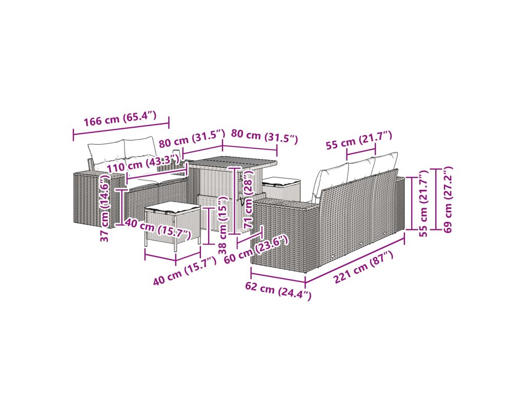 Tato modulová sada zahradního gauče je skvělou volbou pro každý moderní venkovní prostor, poskytuje pohodlí a univerzálnost. Je vyrobená z poly ratanu a masivního akáciového dřeva, má jednoduchý a elegantní design, který se hodí k různým stylům zahrad nebo teras. Ať už ji uspořádáš jako rohovku nebo jako přímou dvojici, gaučová sada splní různé potřeby sezení, takže je ideální na společenské akce nebo na odpočinek.