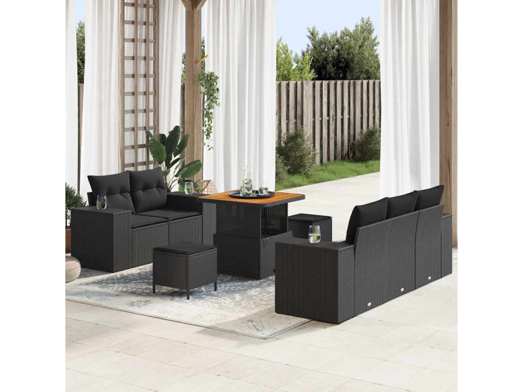 Sada zahradních pohovek s polštářem 8 pcs Černá polyratan 3361944