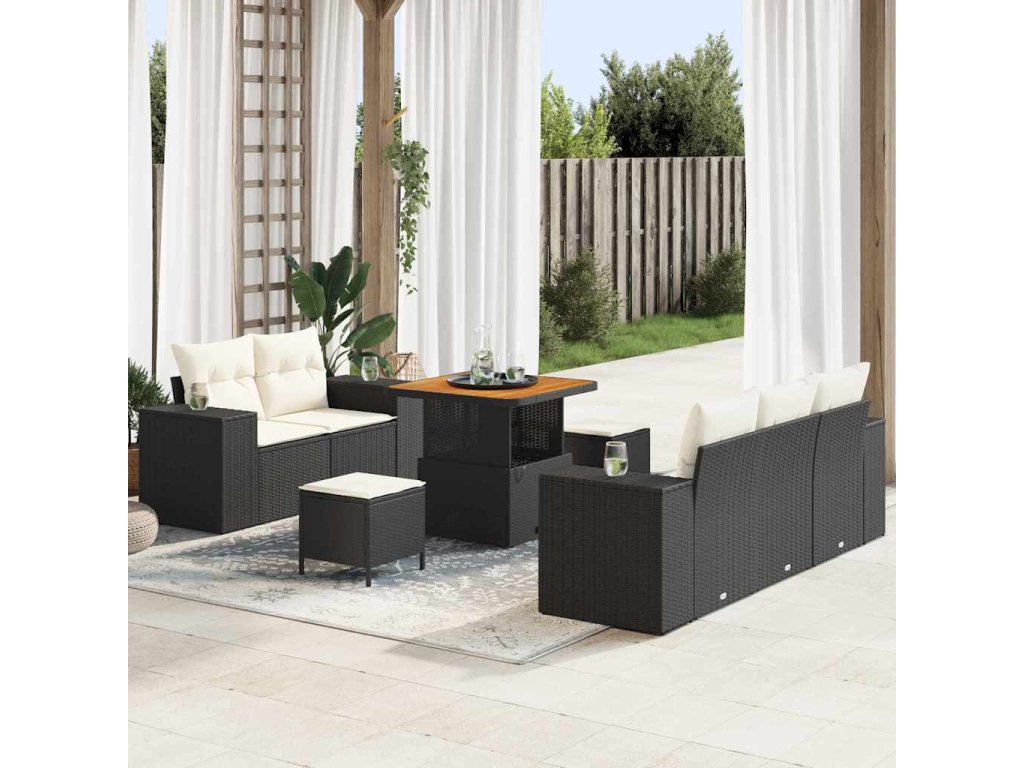 Sada zahradních pohovek s polštářem 8 pcs Černá polyratan 3361945