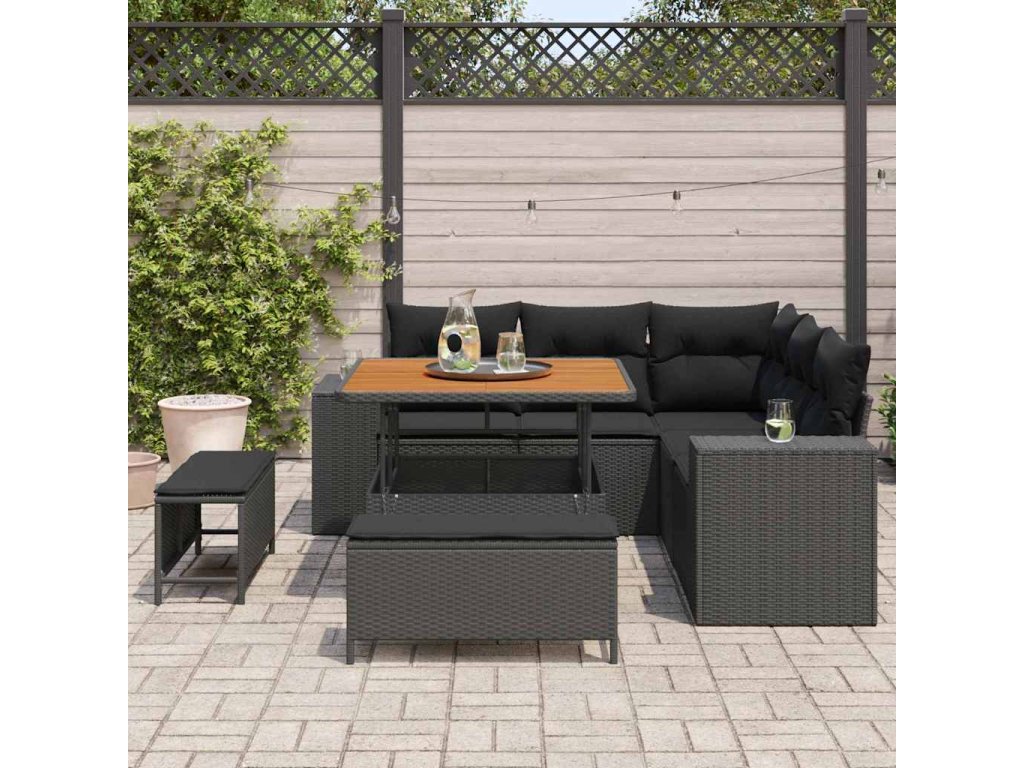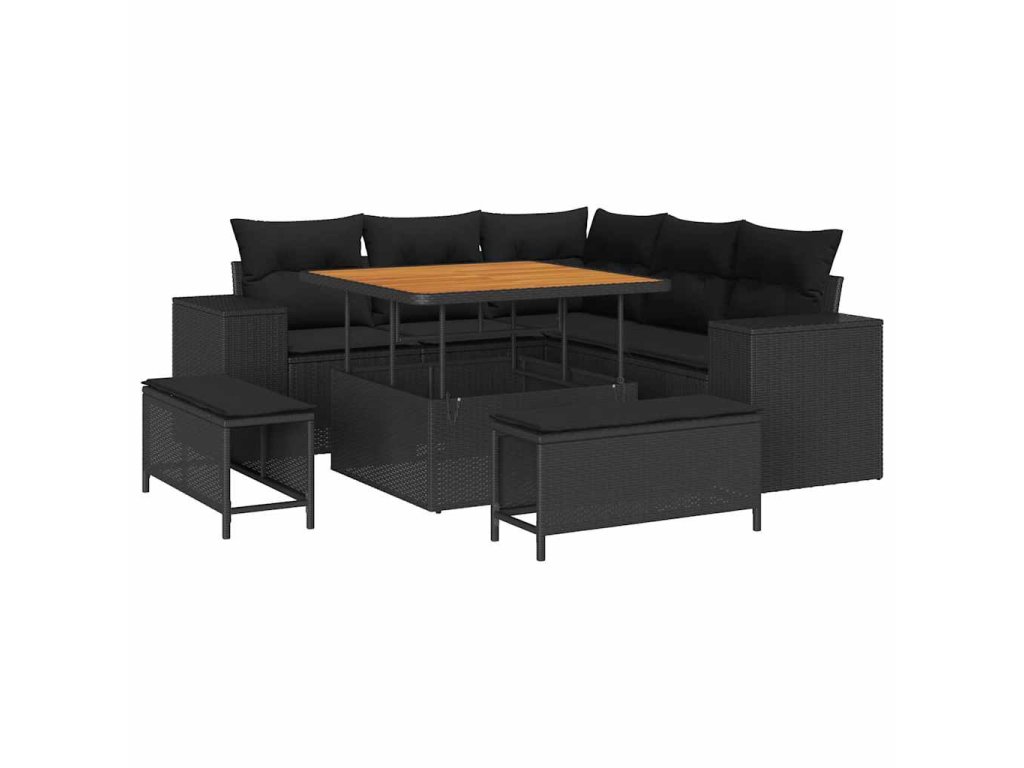 Sada zahradních pohovek s polštářem 8 pcs Černá polyratan 3361994