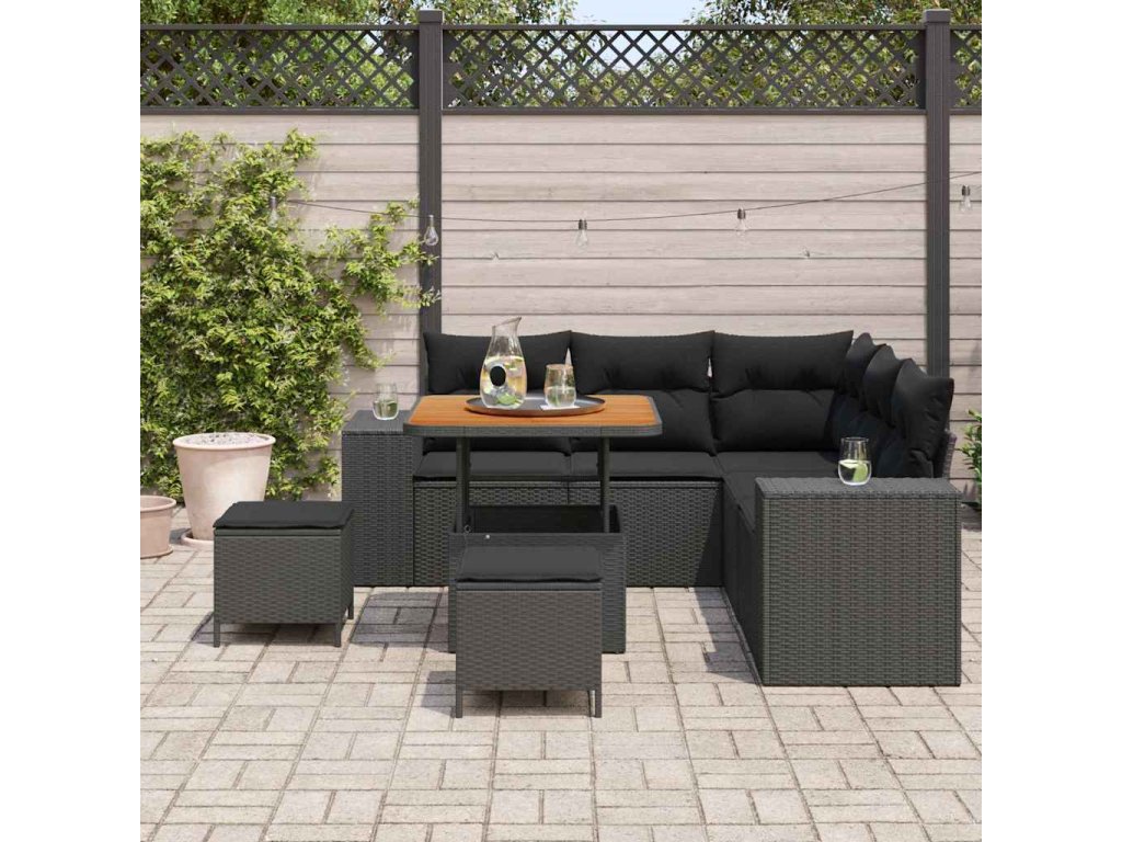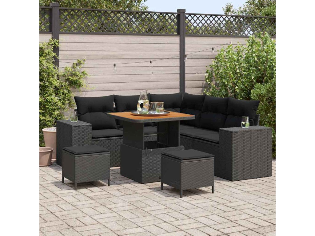 Sada zahradních pohovek s polštářem 8 pcs Černá polyratan 3361999