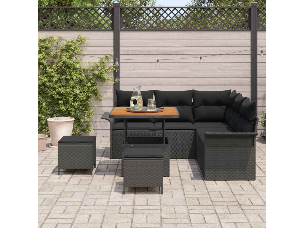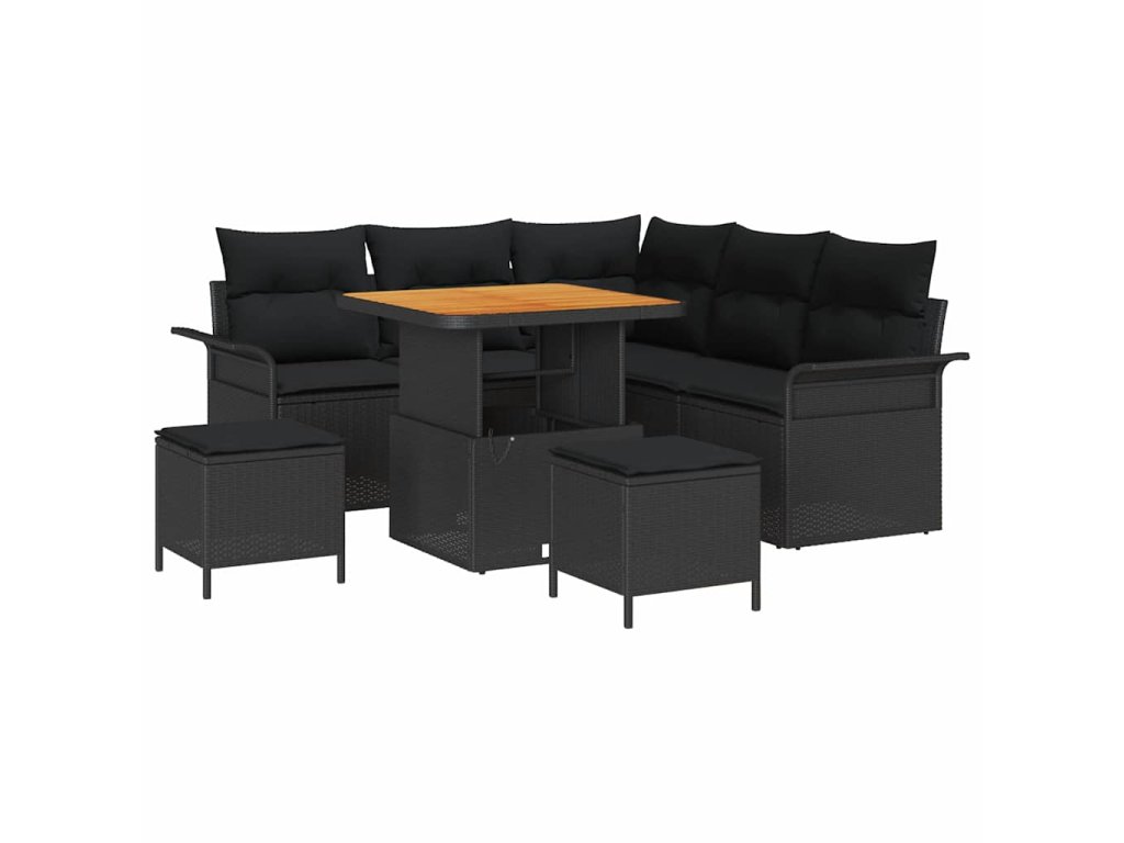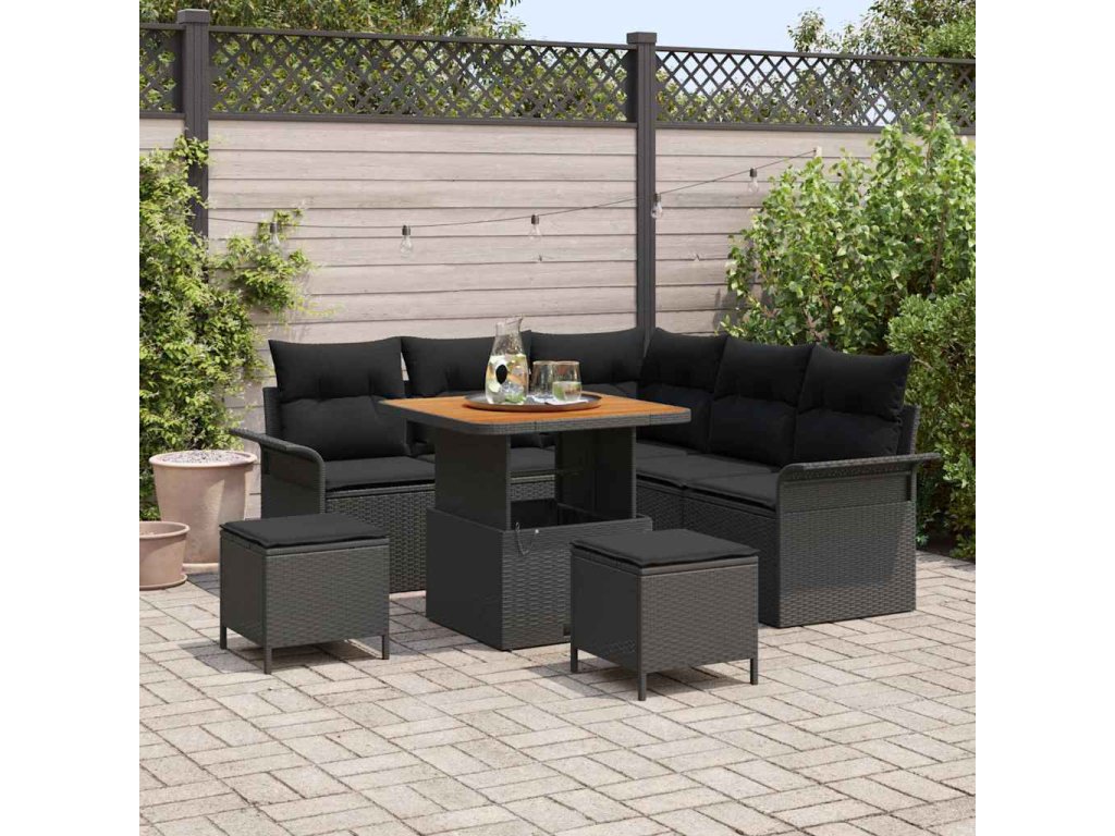 Sada zahradních pohovek s polštářem 8 pcs Černá polyratan 3362129