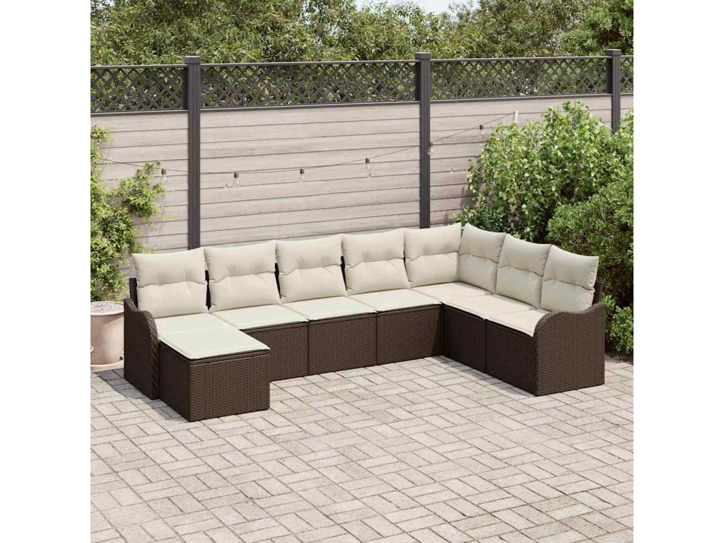 Sada zahradních pohovek s polštářem 8 pcs Hnědá Poly ratan 3345818