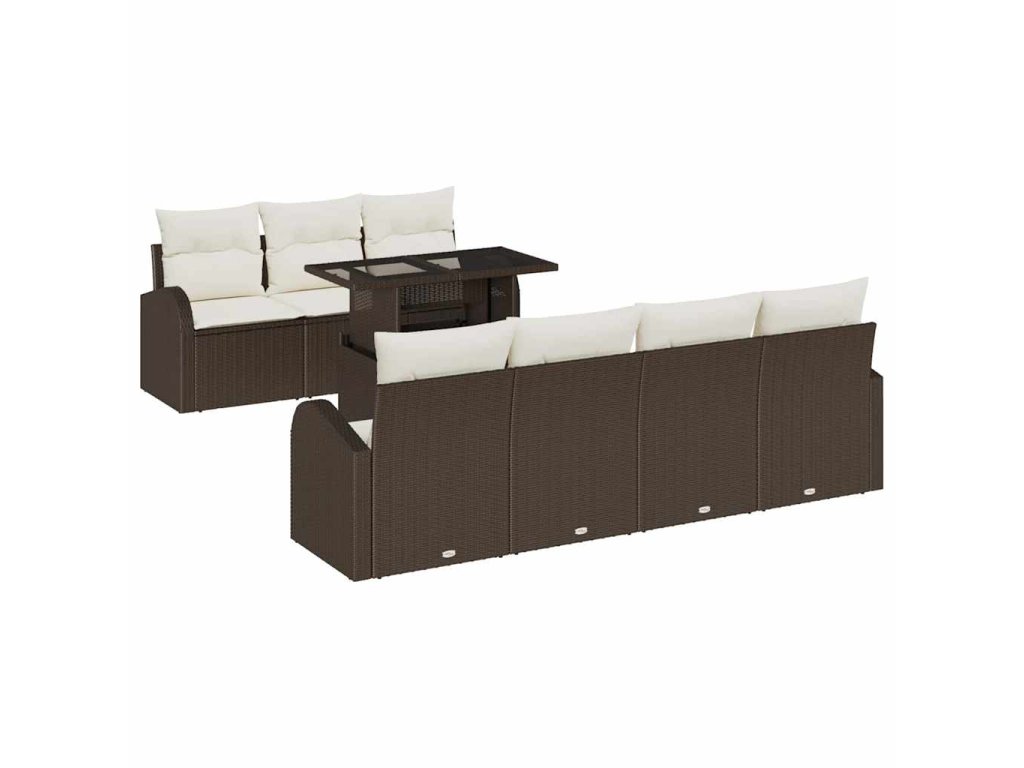 Sada zahradních pohovek s polštářem 8 pcs Hnědá Poly ratan 3348584