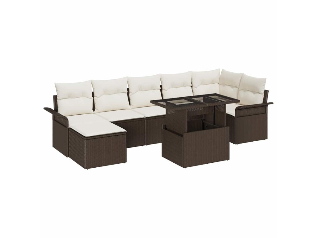 Sada zahradních pohovek s polštářem 8 pcs Hnědá Poly ratan 3357061