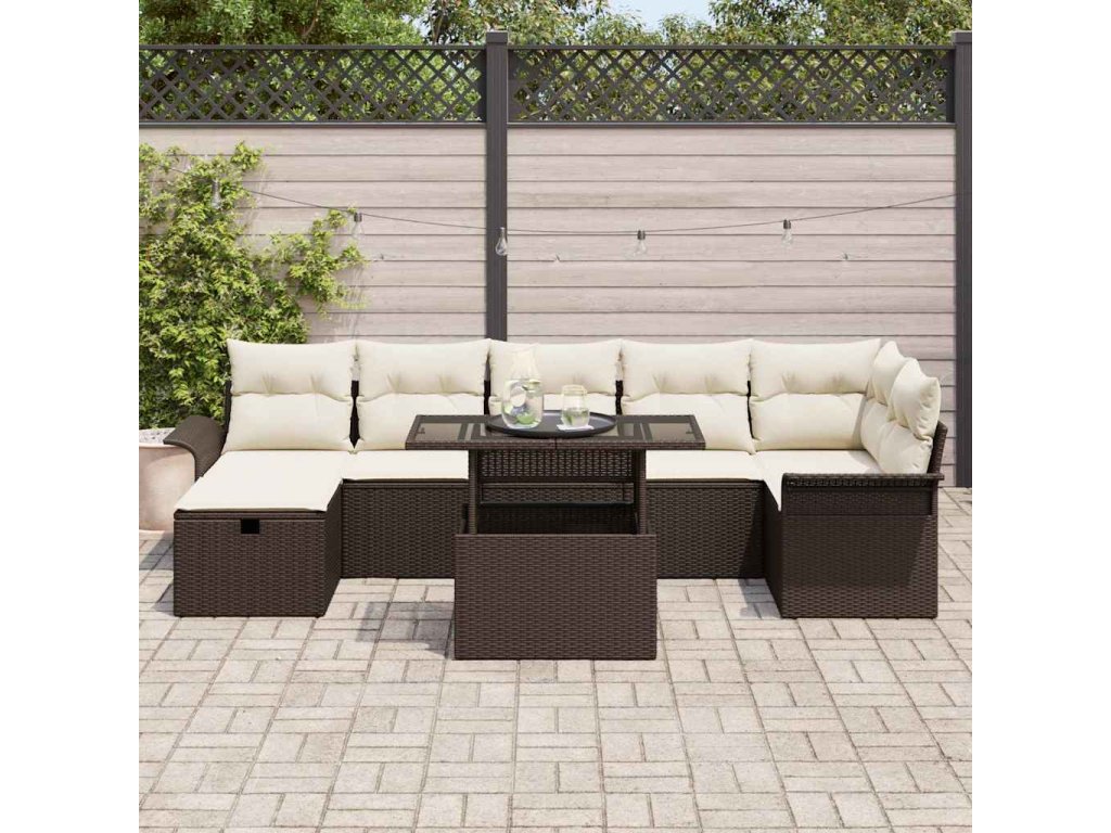 Sada zahradních pohovek s polštářem 8 pcs Hnědá Poly ratan 3359685