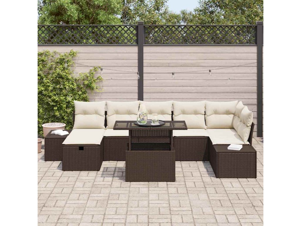 Sada zahradních pohovek s polštářem 8 pcs Hnědá Poly ratan 3359885