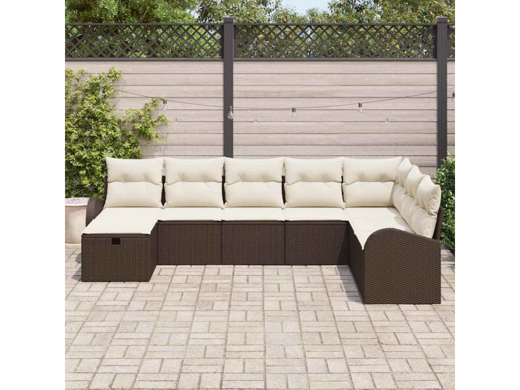 Sada zahradních pohovek s polštářem 8 pcs Hnědá Poly ratan 3360459