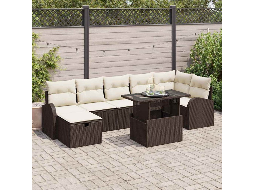 Sada zahradních pohovek s polštářem 8 pcs Hnědá Poly ratan 3361097