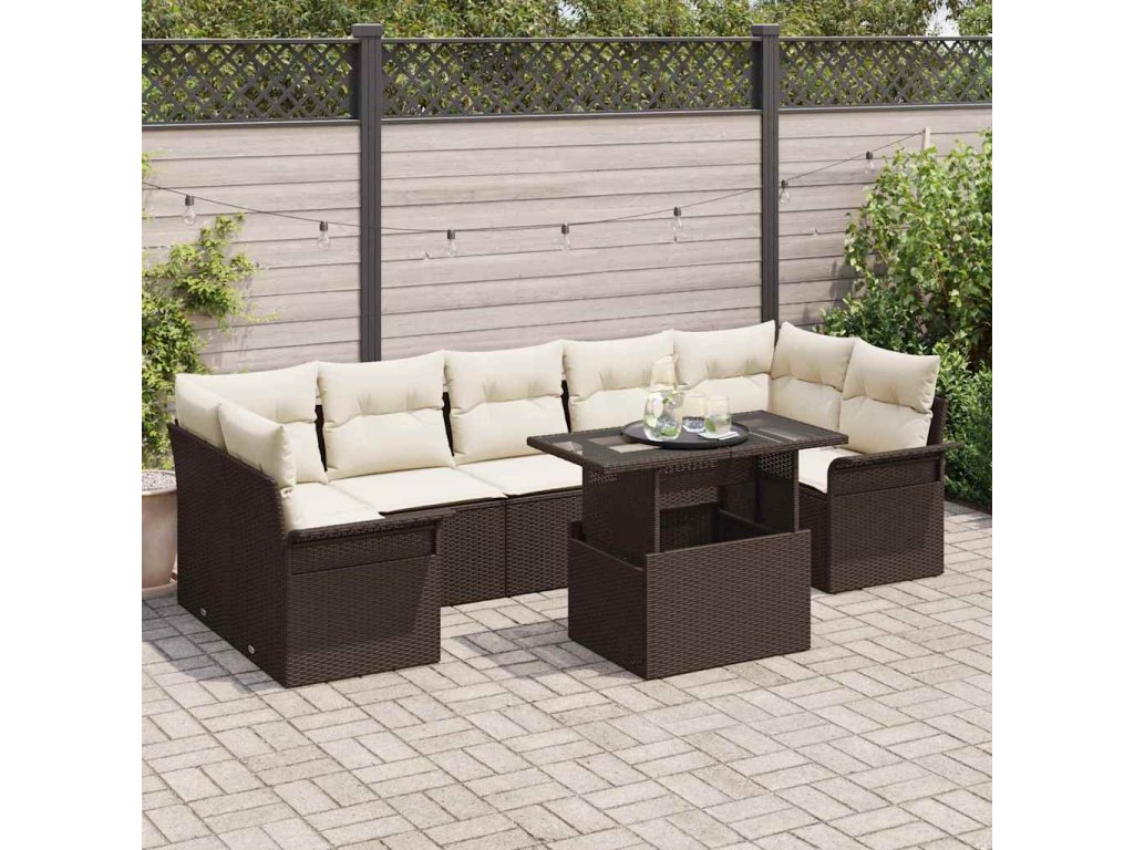 Sada zahradních pohovek s polštářem 8 pcs Hnědá polyratan 3348234