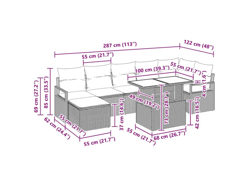 Tento modulární zahradní gaučový set promění váš venkovní prostor na pohodlné místo relaxace. Je navržený pro terasy a zahrady a poskytuje moderní a praktické uspořádání. Každý kus se dá snadno přizpůsobit, takže si můžete užít teplé večery s rodinou nebo uspořádat velké oslavy na jeho měkkém polstrování.