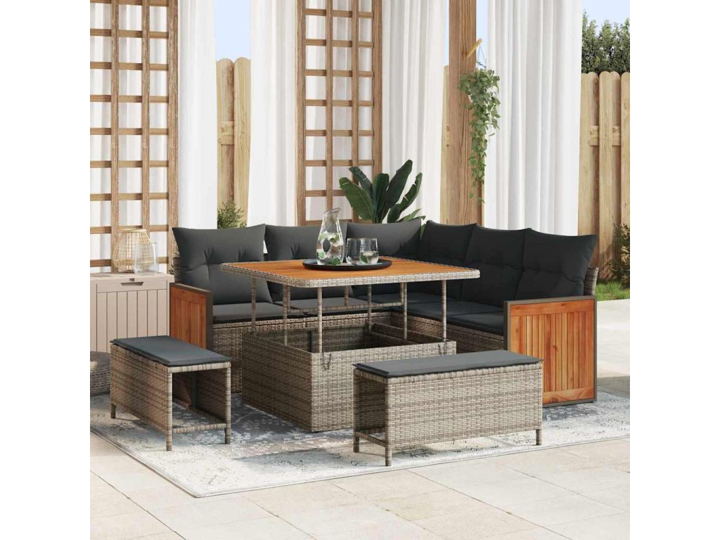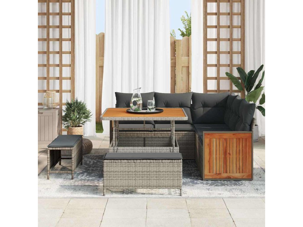 - Design Šetřící Prostor: Tato rohová sada gaučů je perfektní do zahrad a teras s omezeným prostorem. Nabízí modulární flexibilitu, kterou si můžeš přizpůsobit podle sebe. Usporiádání podporuje socializaci, takže je fajn na bavení hostů nebo jen na užívání si klidu.