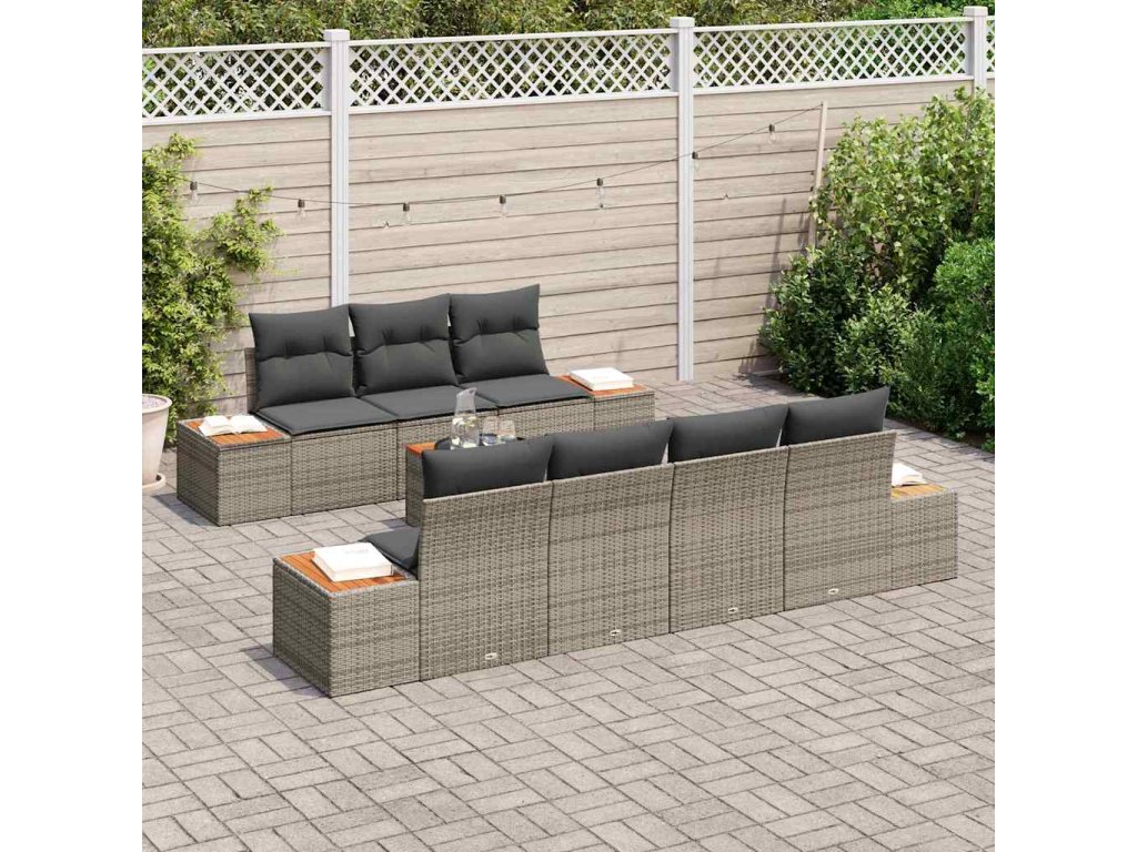 Sada zahradních pohovek s polštářem 8 pcs Šedá Poly ratan 3348040