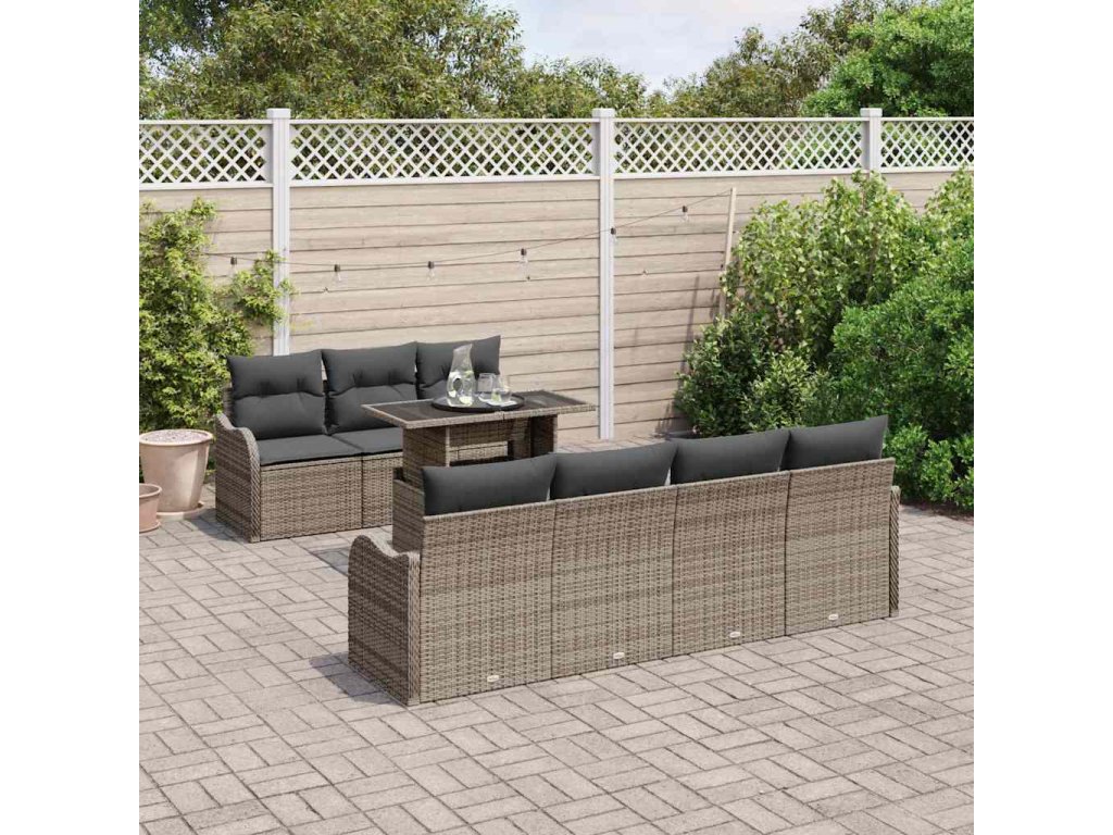 Sada zahradních pohovek s polštářem 8 pcs Šedá Poly ratan 3348405