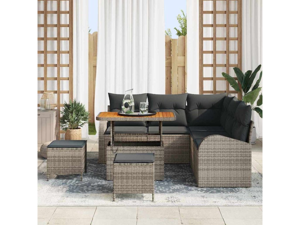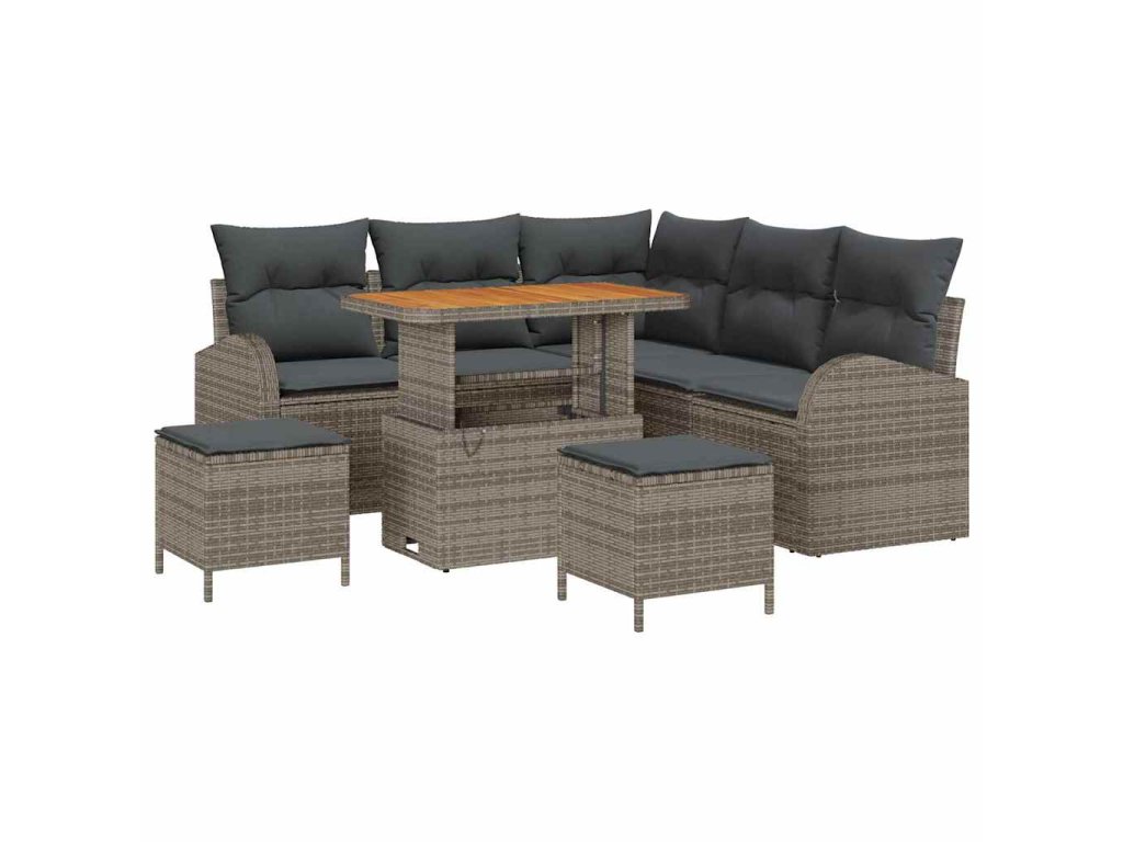 Sada zahradních pohovek s polštářem 8 pcs Šedá Poly ratan 3362398