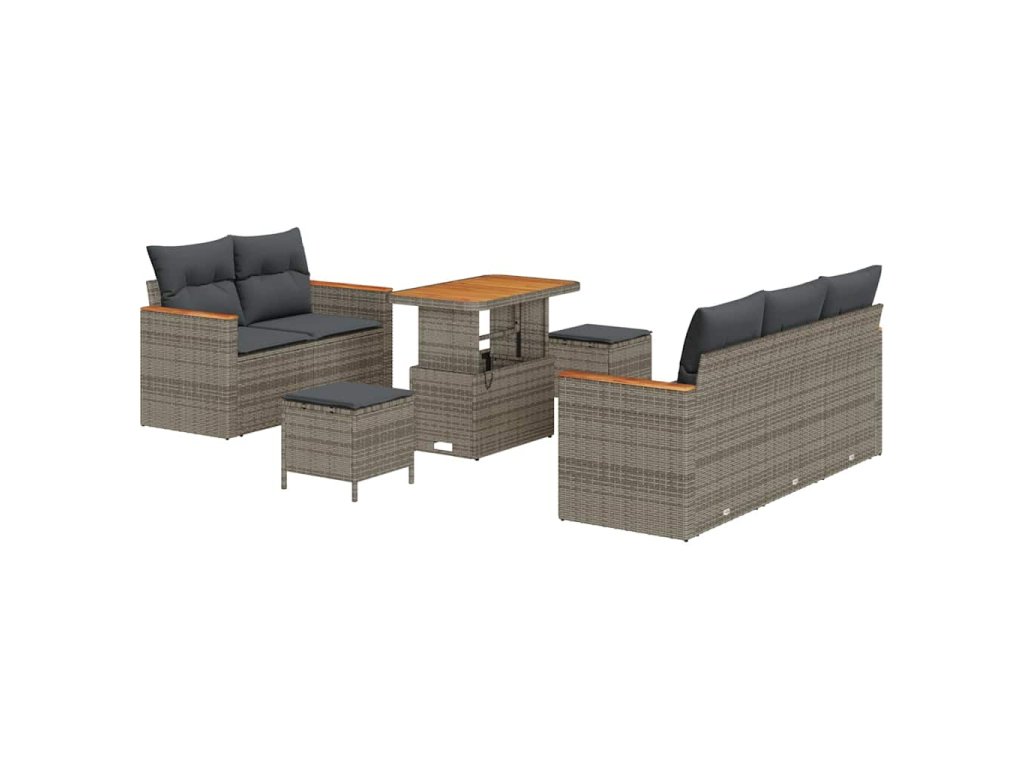 Sada zahradních pohovek s polštářem 8 pcs Šedá Poly ratan 3362993