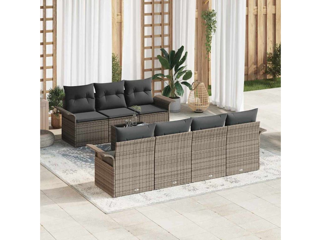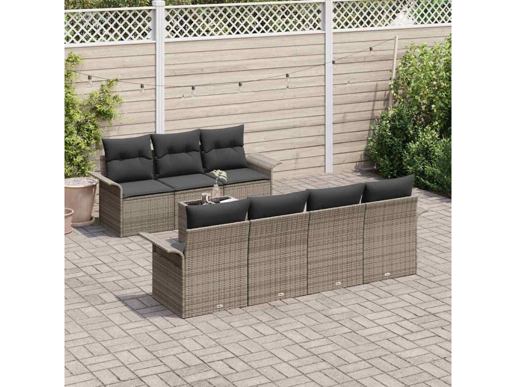 Sada zahradních pohovek s polštářem 8 pcs Šedá polyratan 3345269