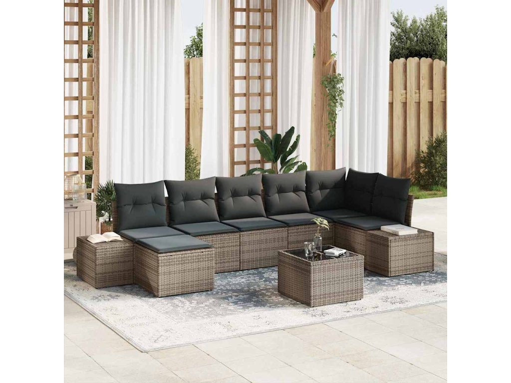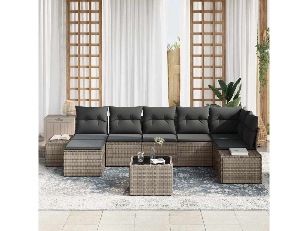 Sada zahradních pohovek s polštářem 8 pcs Šedá polyratan 3347159