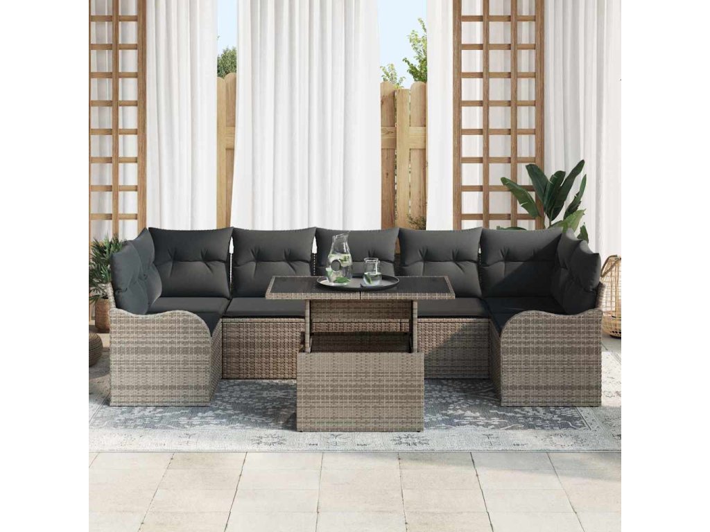 Tahle zahradní sedací souprava je elegantní volba na letní zábavu na vaší terase. Je navržená tak, aby byla jednoduchá a funkční, s čistými liniemi a málo ozdobami, což ji dělá ideální pro moderní zahrady nebo terasy. Její modulární uspořádání pro 8 lidí vám umožní flexibilně uspořádat sezení, ideální pro večírky nebo klidné noci pod hvězdami. Díky odolnému poly ratanovému materiálu tahle sada nejen vypadá skvěle, ale je také dlouhotrvající a pohodlná pro venkovní využití.