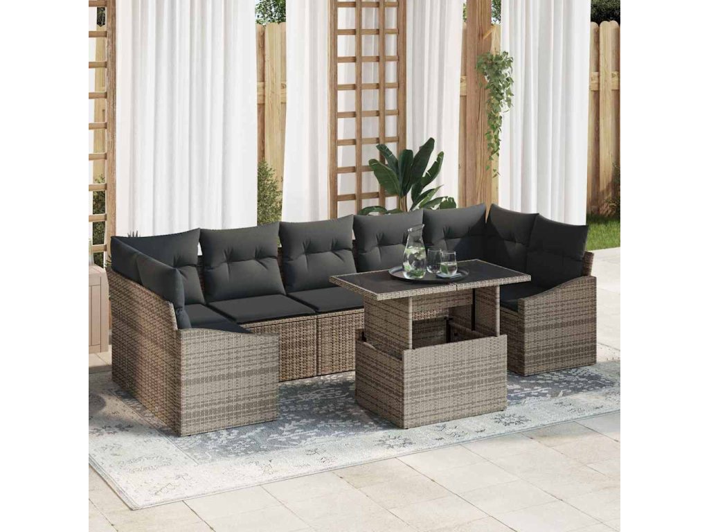Sada zahradních pohovek s polštářem 8 pcs Šedá polyratan 3348955