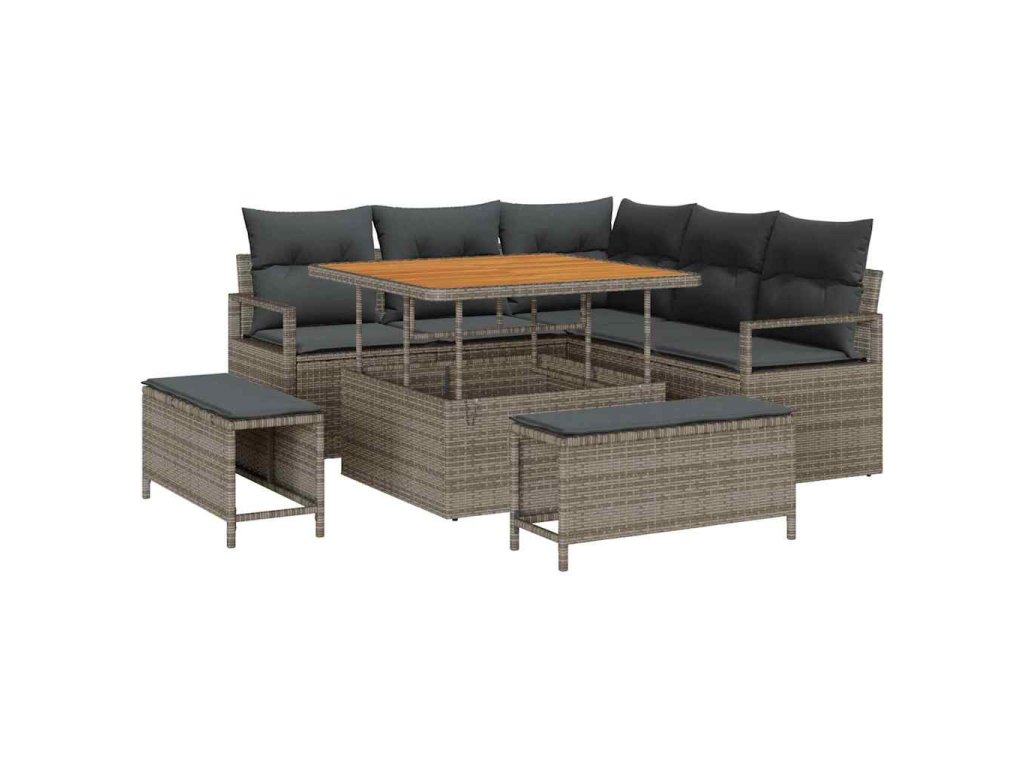 Sada zahradních pohovek s polštářem 8 pcs Šedá polyratan 3362518