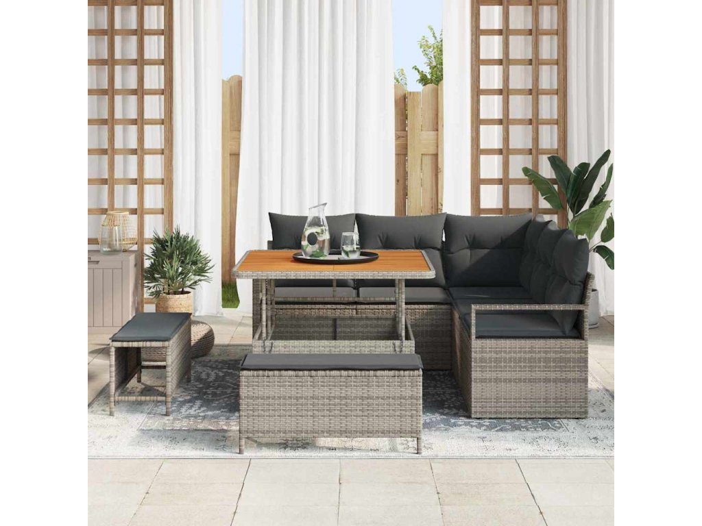 - Odolné materiály: S pevnou konstrukcí a poly ratanovým exteriérem, který obaluje ocelový rám, tato sada je skvělá pro venkovní používání a vypadá elegantně. Poly ratan je odolný vůči povětrnostním podmínkám a je ideální pro dlouhotrvající zahradní nábytek.