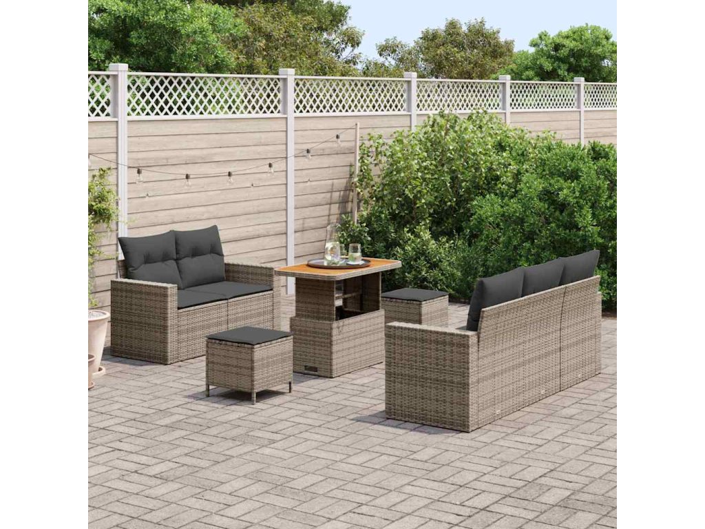 Sada zahradních pohovek s polštářem 8 pcs Šedá polyratan 3363513