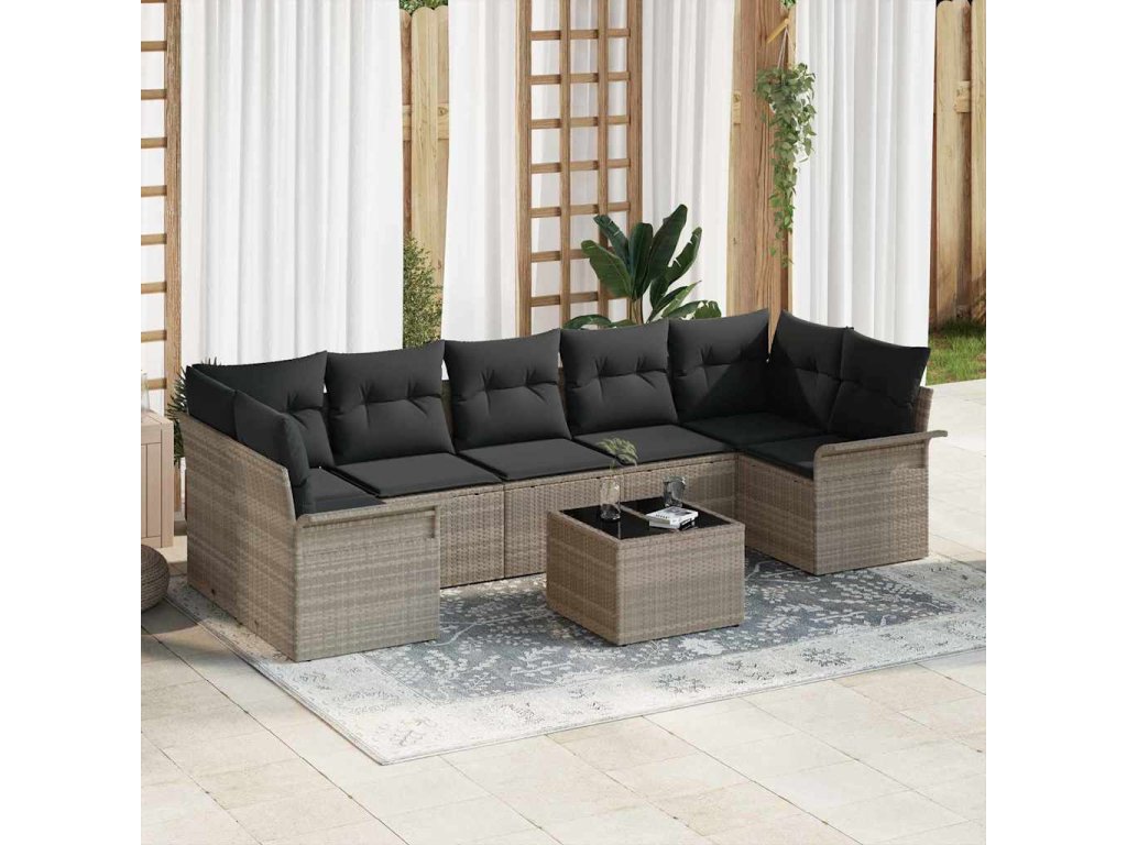 Sada zahradních pohovek s polštářem 8 pcs Světle šedá polyratan 3345282