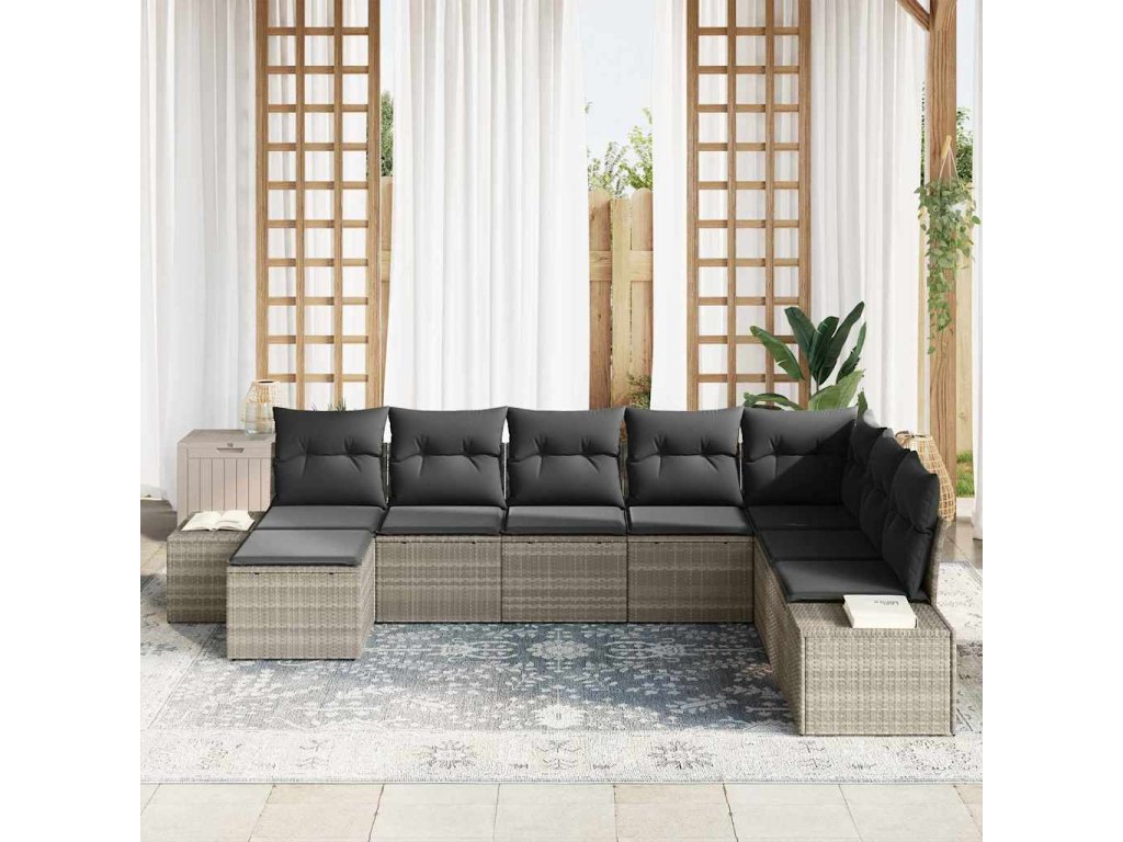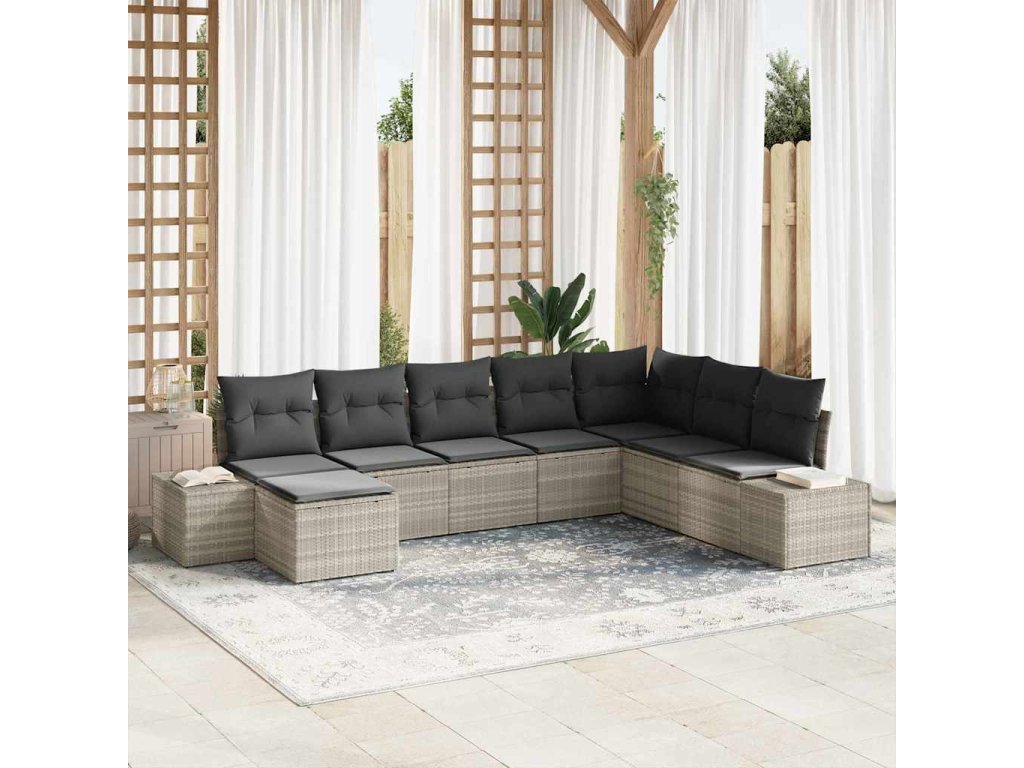 Sada zahradních pohovek s polštářem 8 pcs Světle šedá polyratan 3355851
