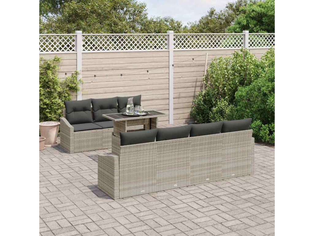 Sada zahradních pohovek s polštářem 8 pcs Světle šedá polyratan 3357685