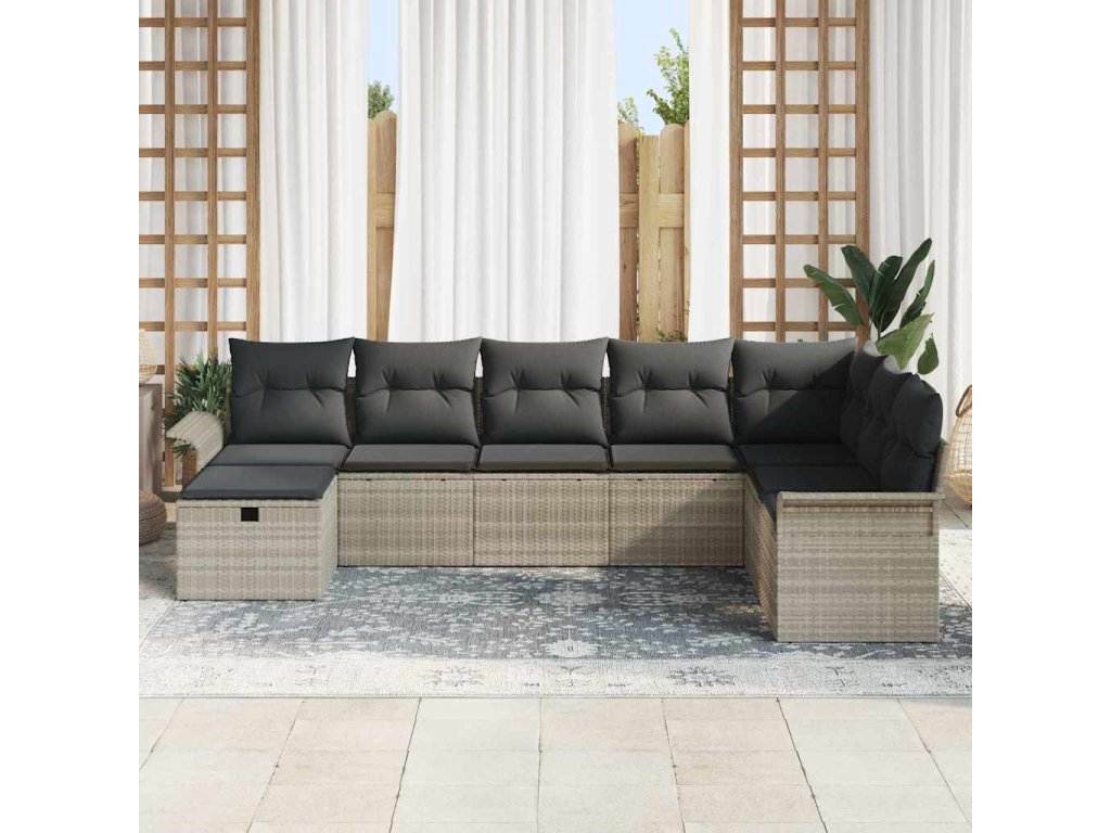 Sada zahradních pohovek s polštářem 8 pcs Světle šedá polyratan 3358931