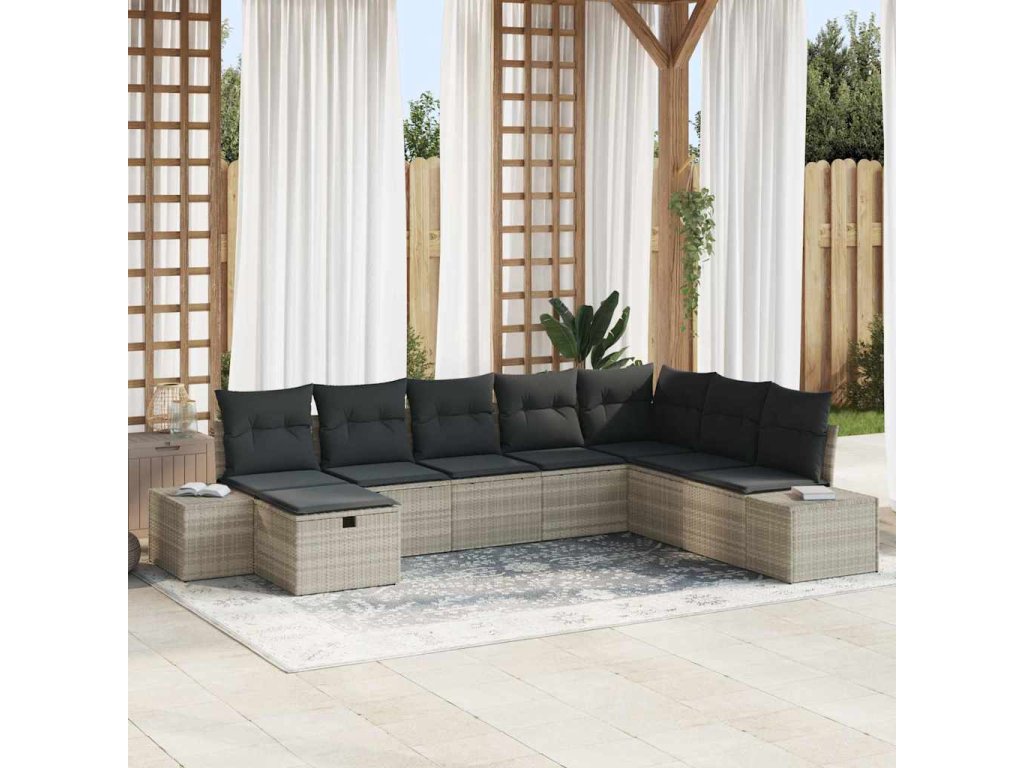 Sada zahradních pohovek s polštářem 8 pcs Světle šedá polyratan 3359431
