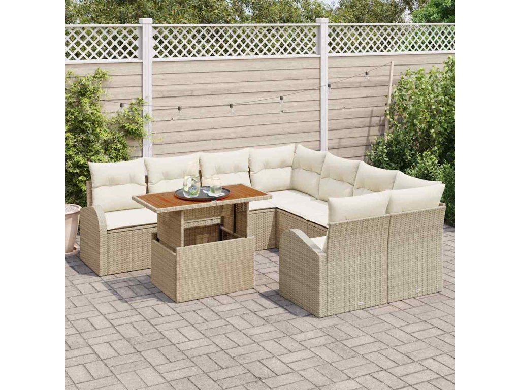 Sada zahradních pohovek s polštářem 9 pcs béžová a krémová 3349567