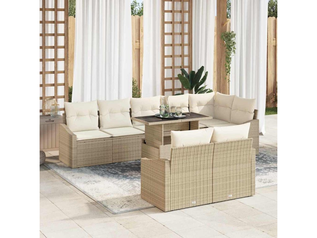 - Vysoce kvalitní poly ratanový rám Kvalitní poly ratan je známý svou trvanlivostí a odolností proti UV záření. Tento sofa set je prakticky nadčasovým kouskem do venkovních prostor. Silný rám zaručuje stabilitu a dodává moderní vzhled, takže je to investice na dlouho.