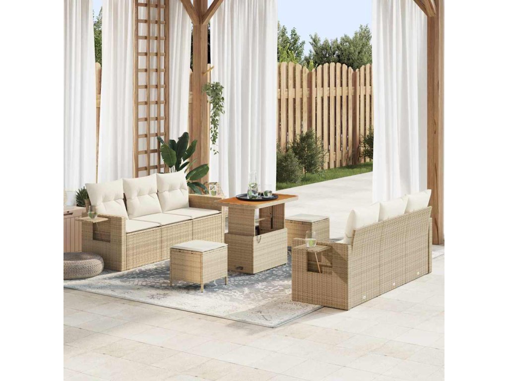 Sada zahradních pohovek s polštářem 9 pcs béžová a krémová 3363651