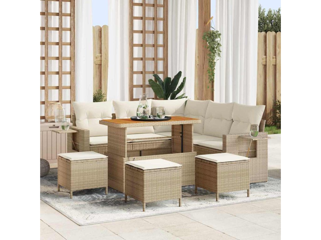 Sada zahradních pohovek s polštářem 9 pcs béžová a krémová 3363701
