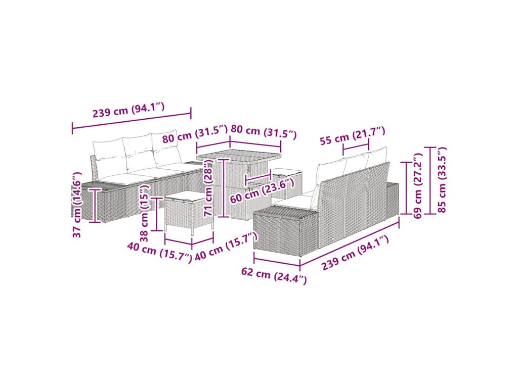 Materiály: Je vyrobená z odolného poly ratanu a silné práškově lakované oceli, což zajišťuje, že je odolná proti UV záření a vydrží celé léto. Poly ratan vypadá skvěle, rám z práškově lakované oceli zajišťuje sílu, takže je připravená na všechny vaše venkovní akce. Součásti: Souprava zahrnuje čtyři boční sedačky, dvě středové sedačky, dva čtvercové taburety a praktický stůl, vše s užitečným úložným prostorem. Tyto kusy umožňují měnit uspořádání sezení a ukládat polštáře nebo venkovní kryty, aby bylo všechno pěkné a uklizené. Funkce / Použití / Design: Díky modulárnímu designu lze soupravu přizpůsobit podle vašich potřeb. Každá část může být přeuspořádána pro různé události, ať už pořádáte party, nebo si jen užíváte klidný večer. Chytře využívá menší části a maximalizuje prostor pro pohodlí a relaxaci. Doporučené použití: Ideální do zahrad, na terasy nebo patia, tahle sedací souprava nabízí flexibilní sezení pro slunečné letní dny nebo hvězdné noci. Její moderní vzhled se hodí k různým venkovním stylům, což ji dělá středobodem společenských akcí, nebo klidným místem pro relaxaci o samotě. Údržba: Aby nábytek zůstal v perfektním stavu, zakryjte ho voděodolným krytem, když ho nepoužíváte. Udržujte ho pravidelně čistý pomocí měkkého hadříku. Ukládání polštářů dovnitř během špatného počasí prodlouží jejich životnost a udržuje všechno vypadat čerstvě a pěkně.- Barva: Béžová a krémová