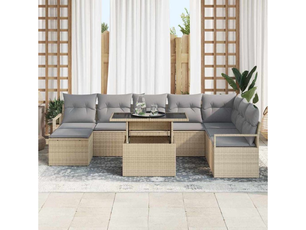 Sada zahradních pohovek s polštářem 9 pcs béžová a světle šedá 3348876