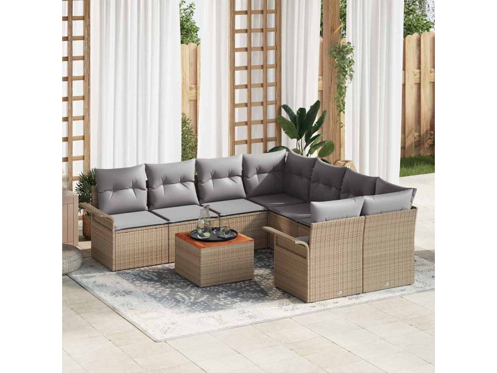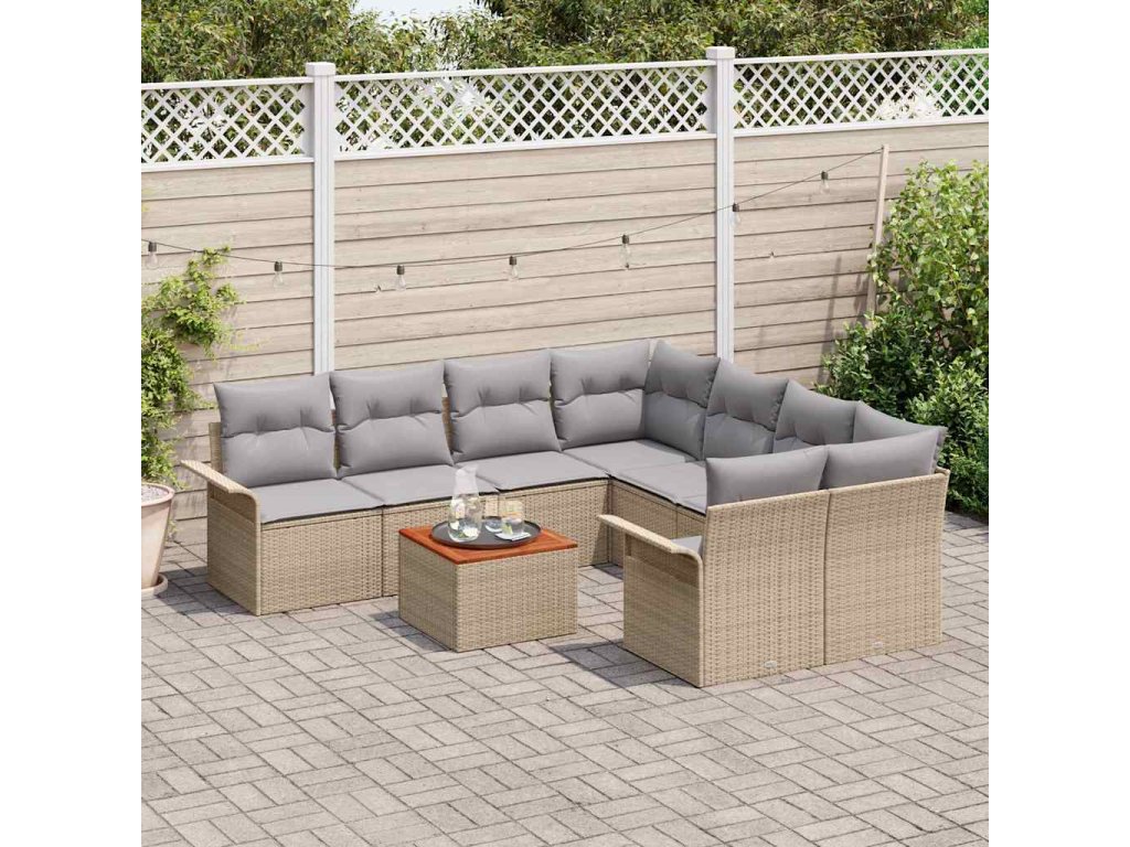 Sada zahradních pohovek s polštářem 9 pcs Béžová a Světle šedá 3355977