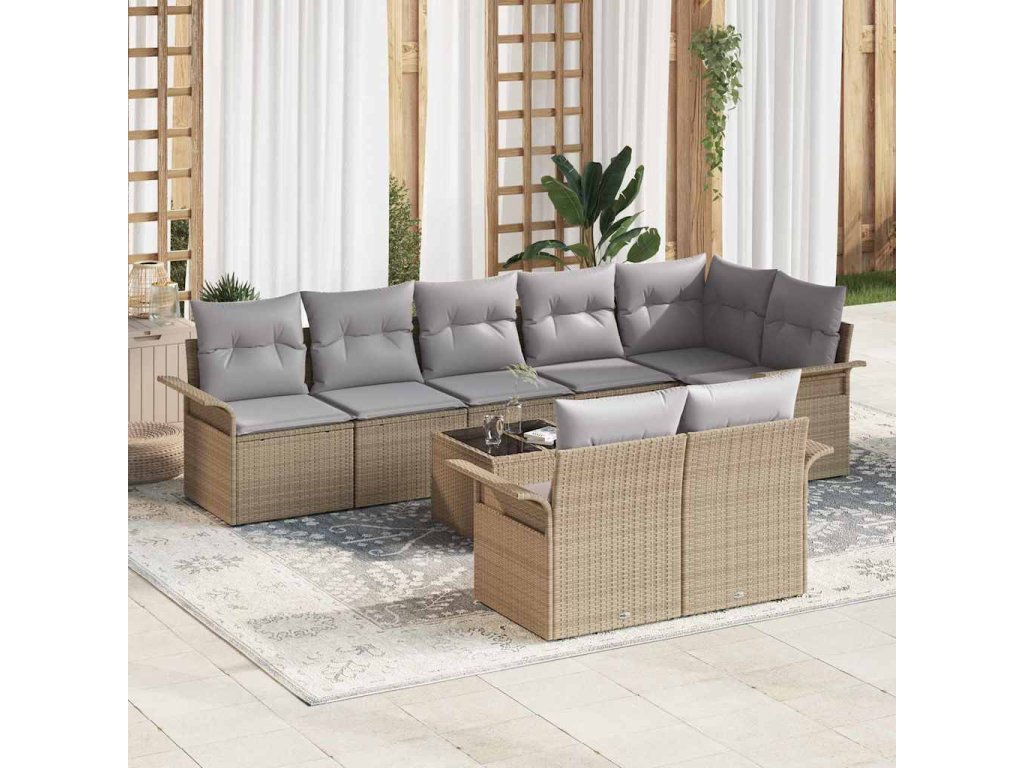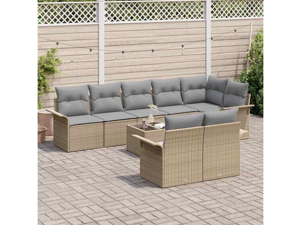 Sada zahradních pohovek s polštářem 9 pcs Béžová Poly ratan 3345420