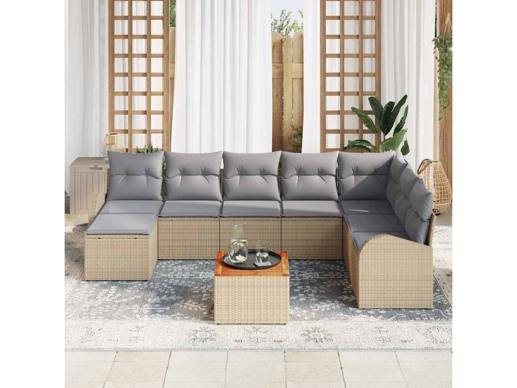 Sada zahradních pohovek s polštářem 9 pcs Béžová Poly ratan 3347616