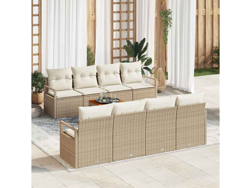 Sada zahradních pohovek s polštářem 9 pcs Béžová Poly ratan 3347680