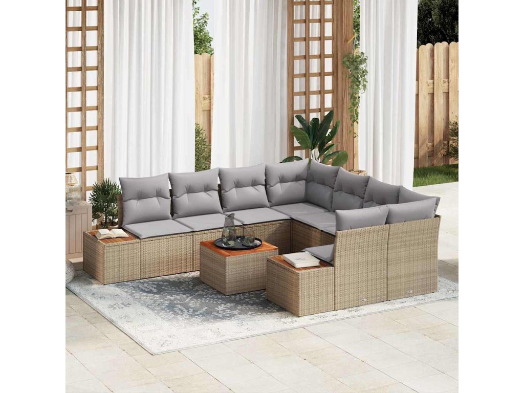 Sada zahradních pohovek s polštářem 9 pcs Béžová Poly ratan 3348056