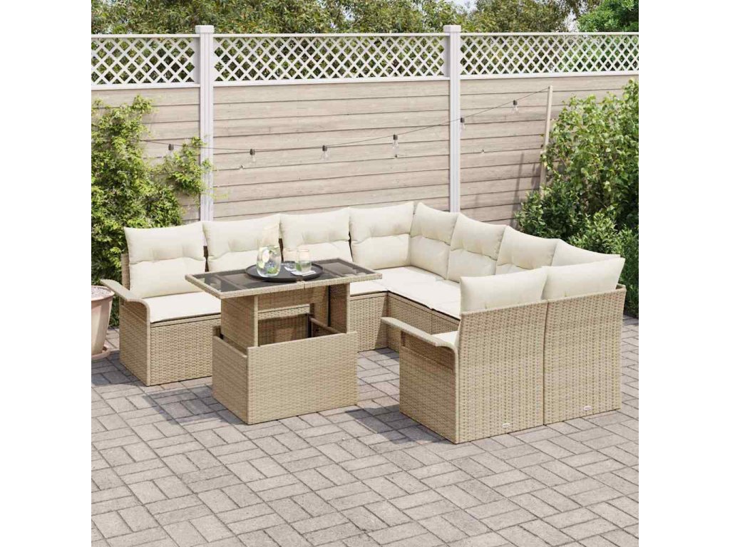 Sada zahradních pohovek s polštářem 9 pcs Béžová Poly ratan 3348257