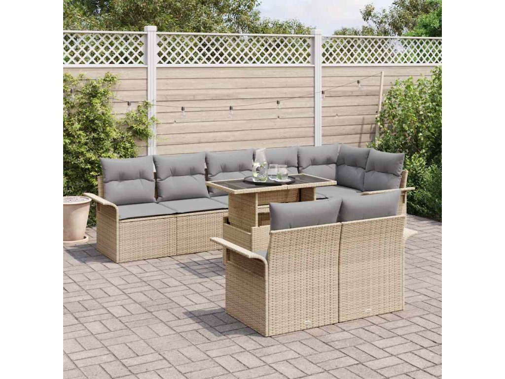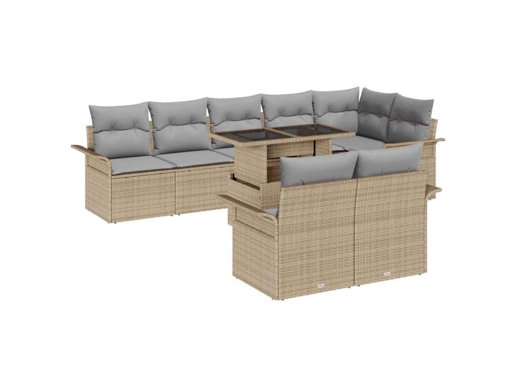 Sada zahradních pohovek s polštářem 9 pcs Béžová Poly ratan 3348306
