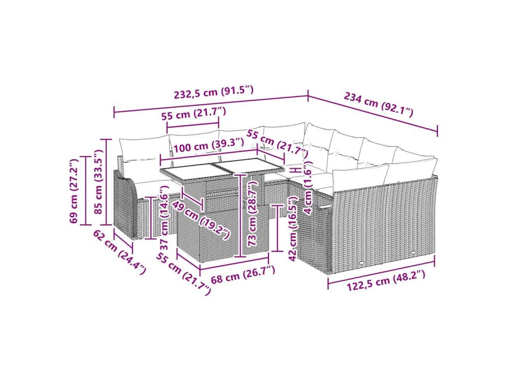 - Kompletní souprava: Obsahuje 9 modulů, z nichž každý se dá snadno přeuspořádat podle potřeby, ideální na různé příležitosti. Pohodlné sezení zajišťují voděodolné polštáře.