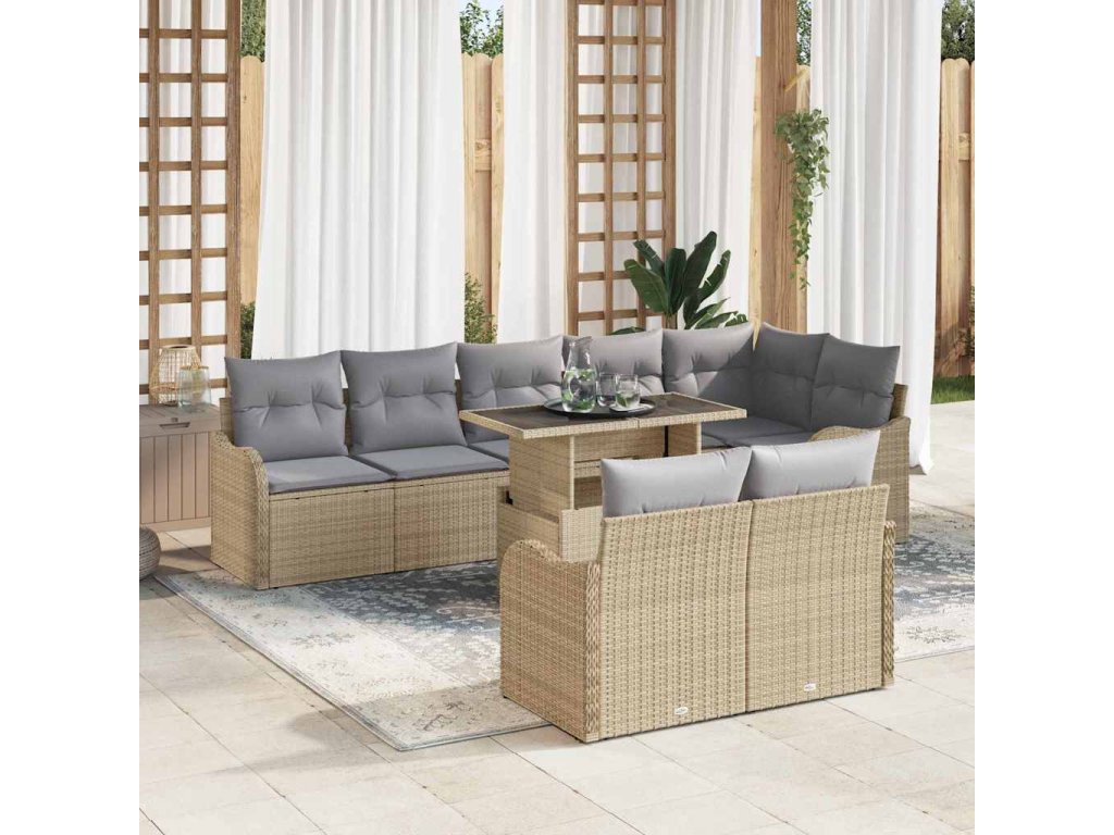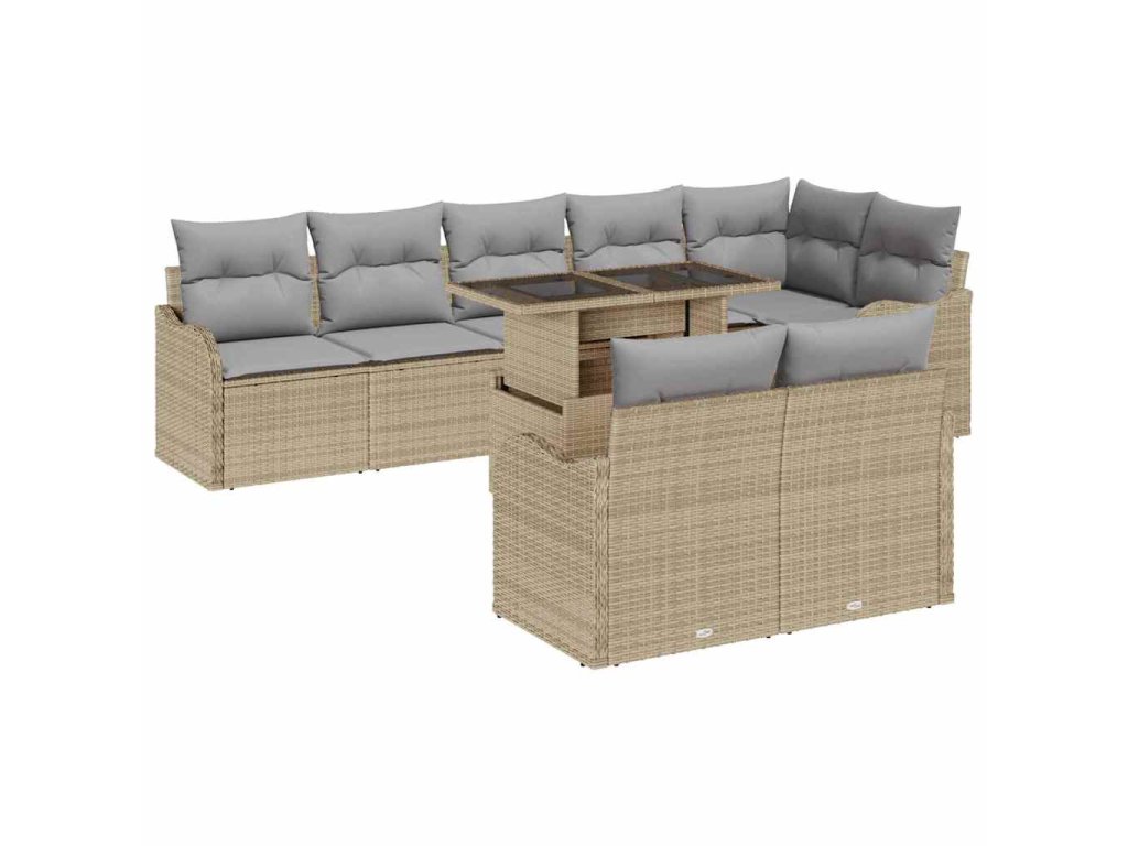 Sada zahradních pohovek s polštářem 9 pcs Béžová Poly ratan 3348486